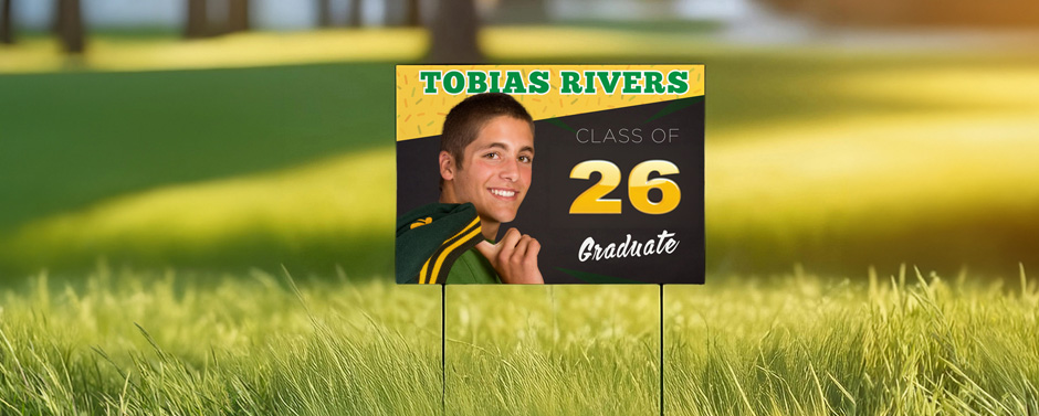 Share this proud moment with your neighborhood! Our yard signs are perfect to put your graduation on display. We offer two durable signs to fit your needs: 4mm and 10mm Coroplast. Coroplast is lightweight, sturdy, waterproof, and stain-resistant. And these signs have a high tolerance to handle the extreme elements outside. (Both cold and hot temperatures).