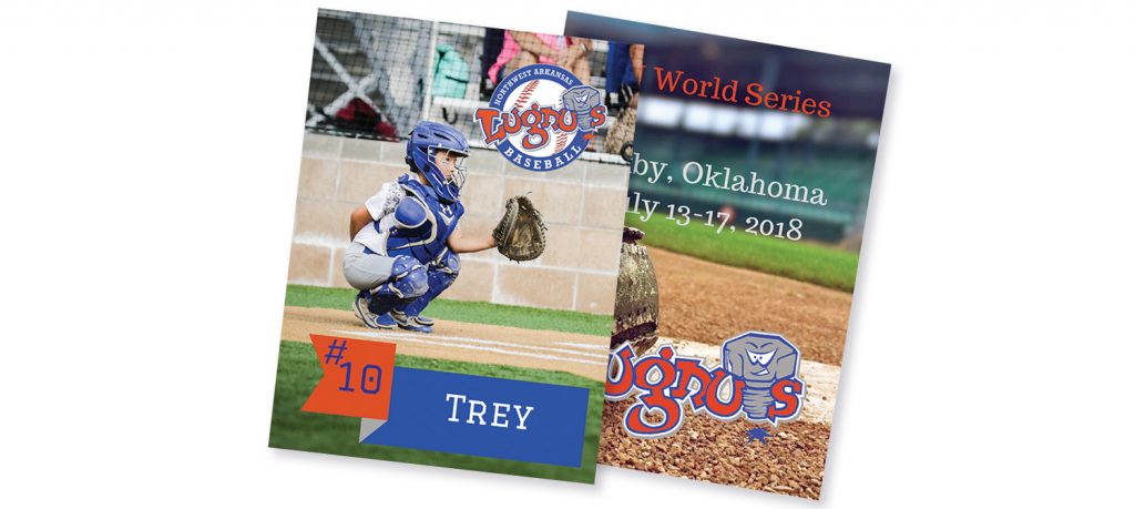 “My son is on a travel baseball team, and the moms have a tradition of putting together goody bags for the big end-of-season tournaments. One of our moms is a photographer, so I used her photos and designed a trading card for each of the boys. We gave each boy a bunch of his own cards to give to family and friends, plus a complete pack of all his teammates’ cards.”